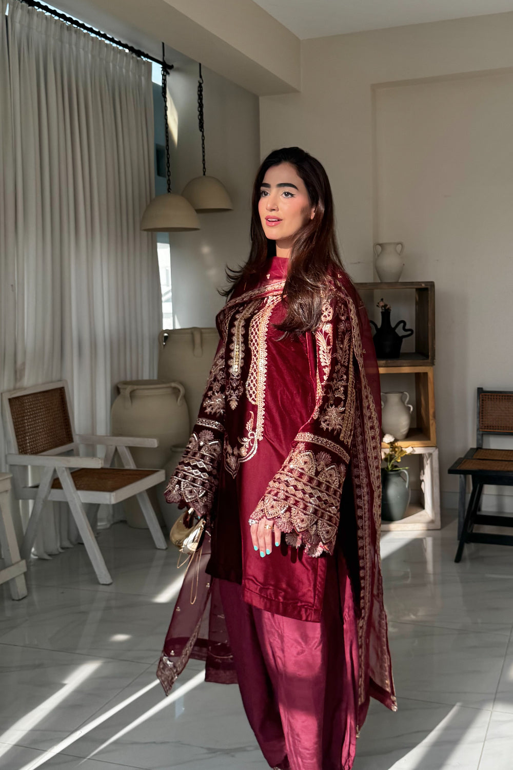 ZARPOSH’23 offers a luxury ready-to-wear collection featuring exquisite materials like silk, velvet, and chiffon. It includes a variety of styles suitable for special events, from weddings to formal events.