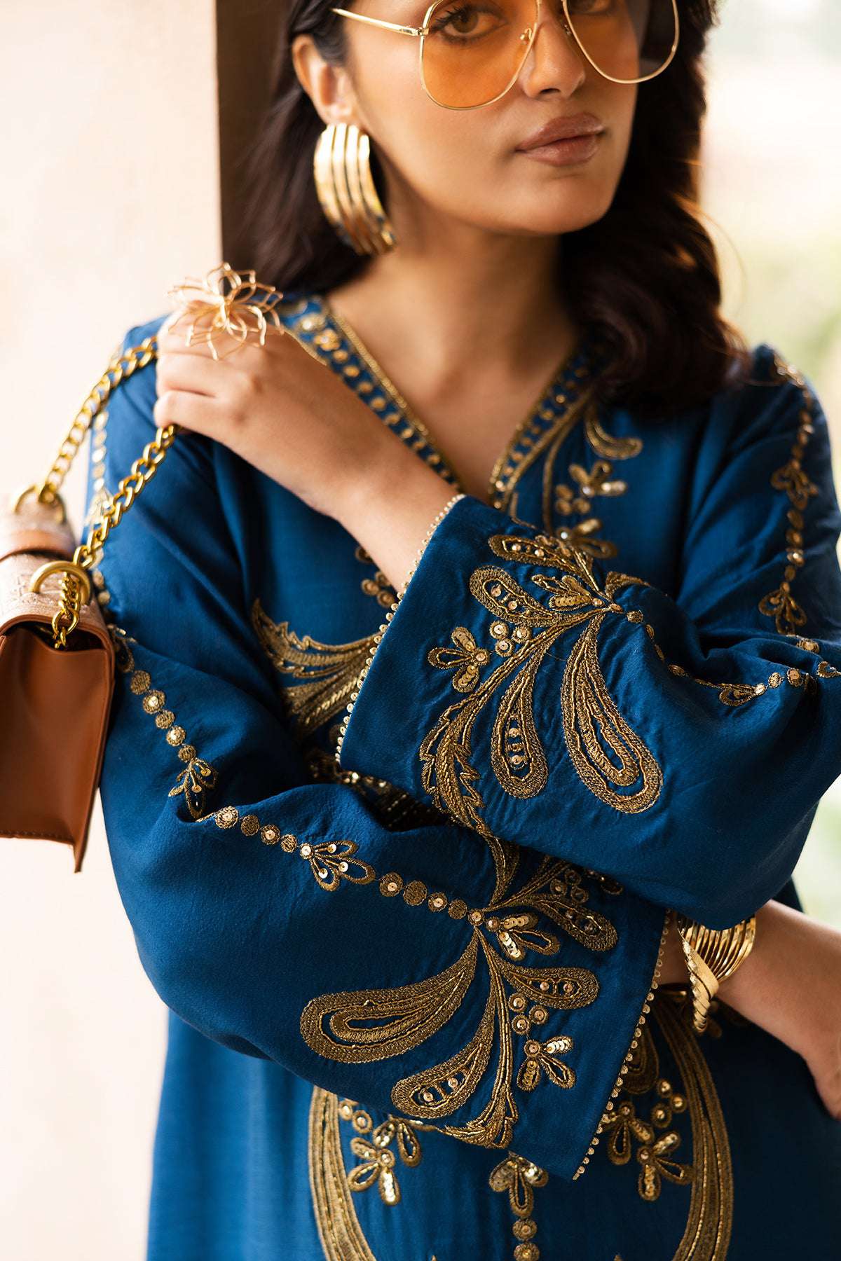 - Hand-embellished cut dana, sequins, and crystals for a subtle sparkle