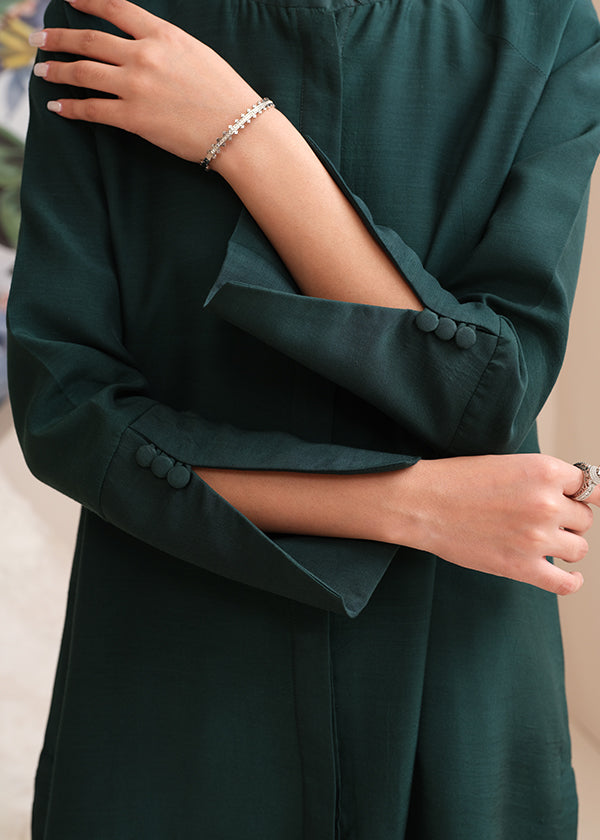Refined, modern, and effortlessly elegant , the EMERALD raw silk shirt is the epitome of sophistication. Designed in a rich emerald green hue, this button-down shirt features a sleek concealed placket with delicate stitching, ensuring a seamless, polished look.