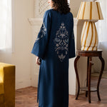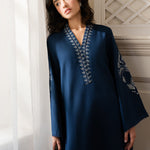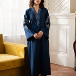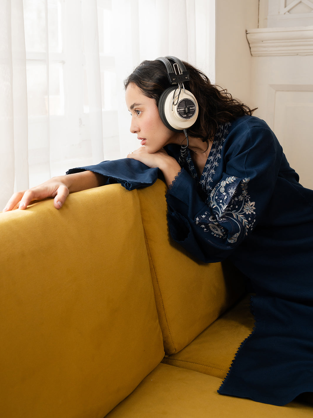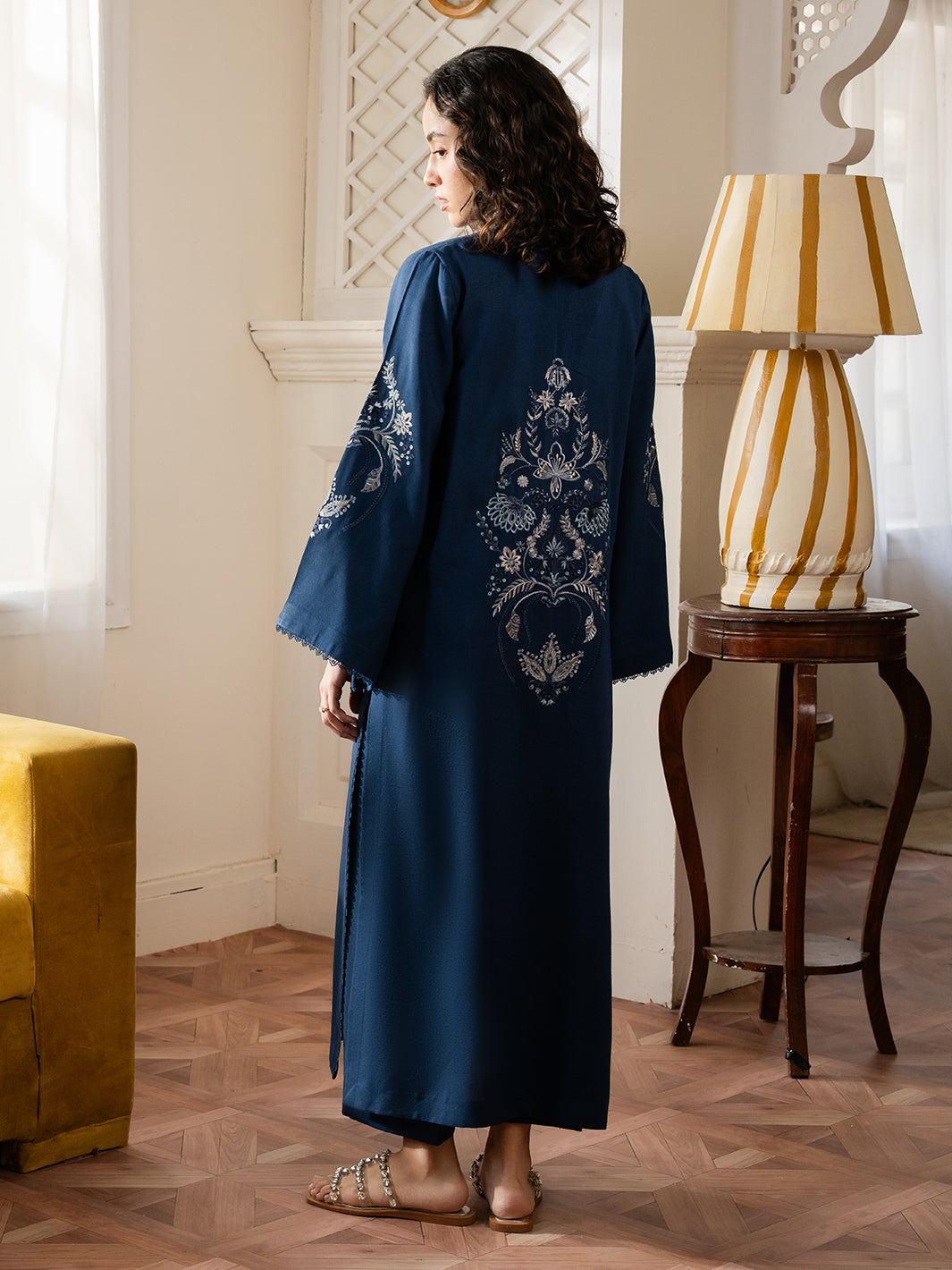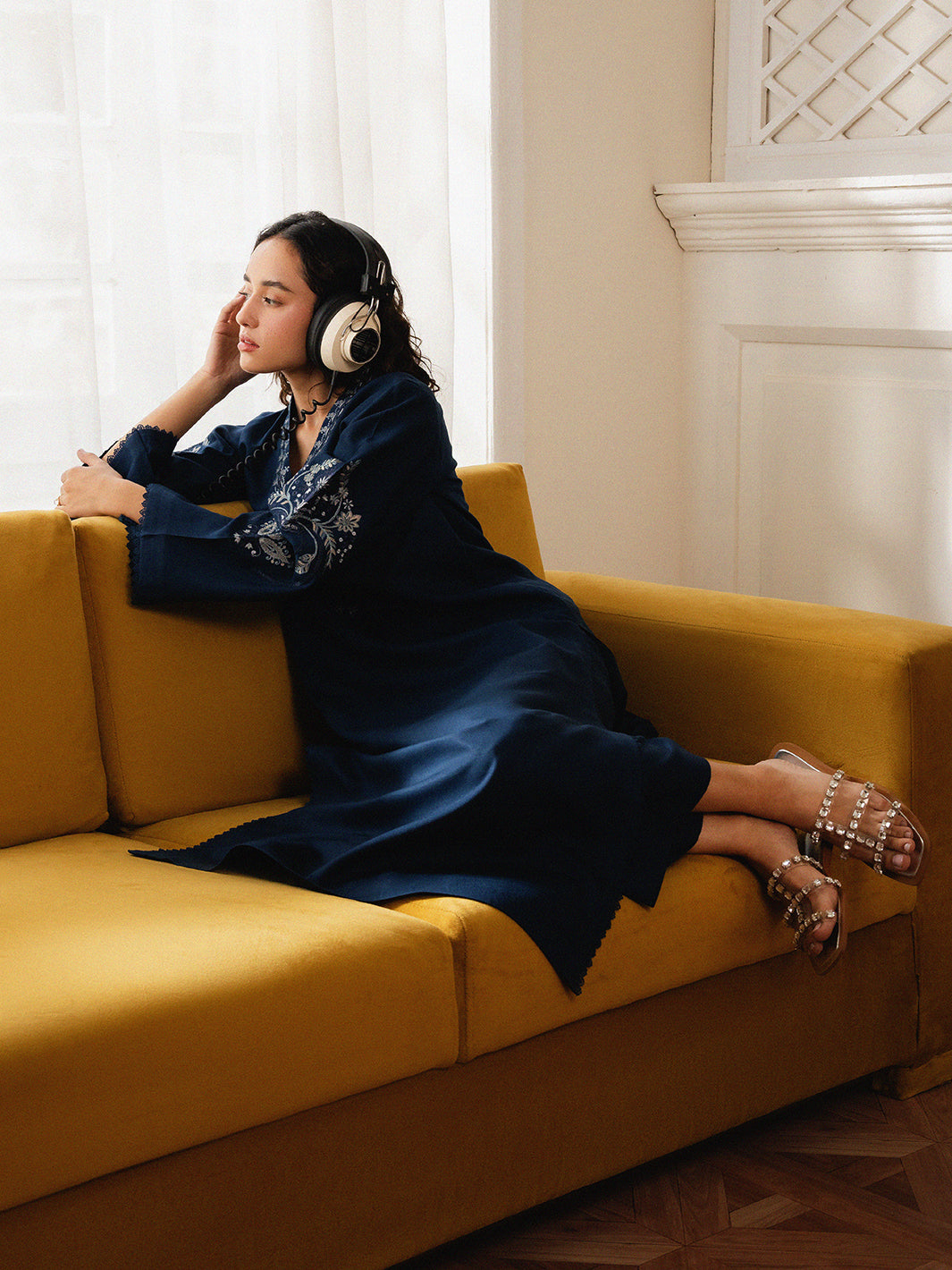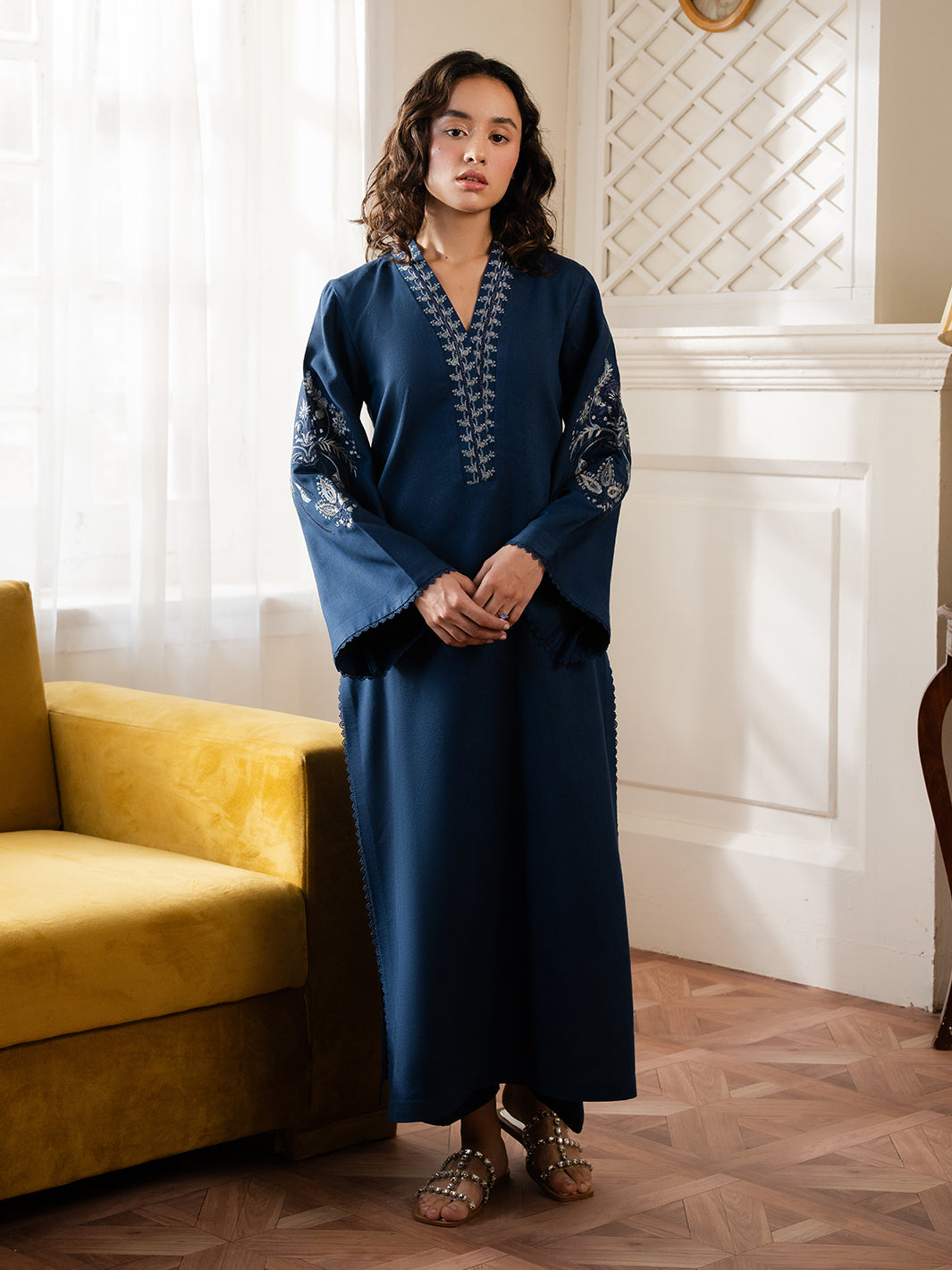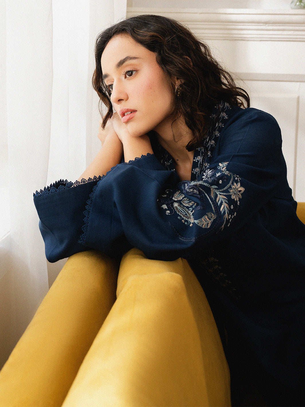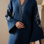 In a striking shade of blue, Imprint is a vision of elegance etched with artistry. Crafted in Karandi, this stitched two-piece ensemble features delicate embroidery that frames the neckline and cascades onto the sleeves — like hand-drawn sketches coming alive on fabric.