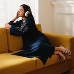 Its beautiful silhouette and minimal detailing highlight the quiet strength of simplicity, while the contrast of the embroidery captures the timeless charm of ink on canvas. Imprint is designed for the woman who carries her own story, leaving a graceful mark wherever she goes.