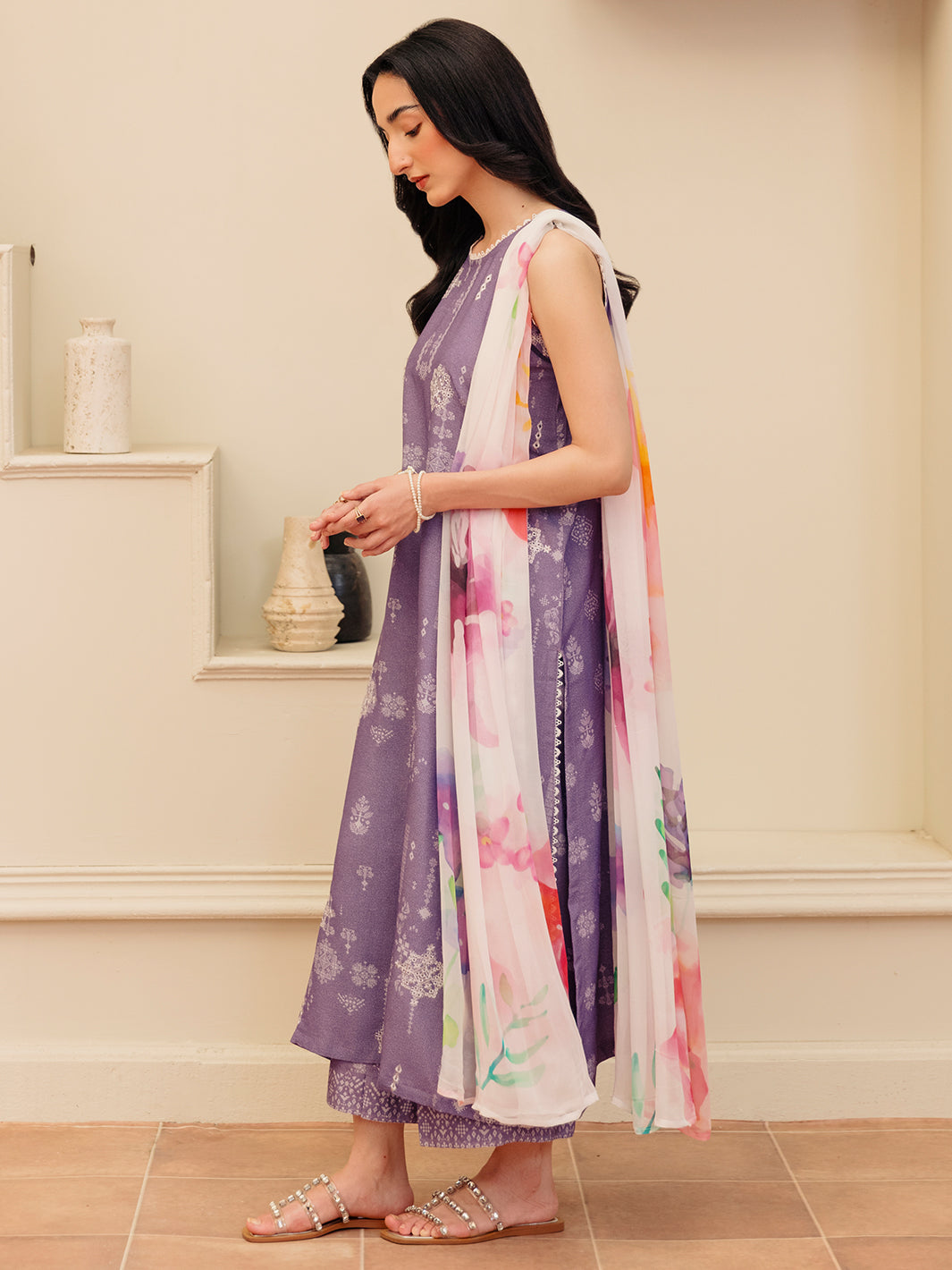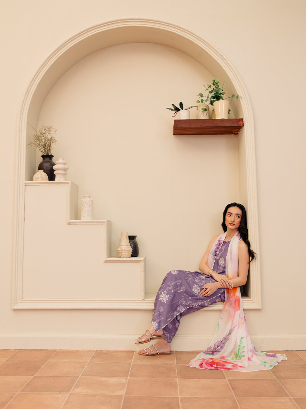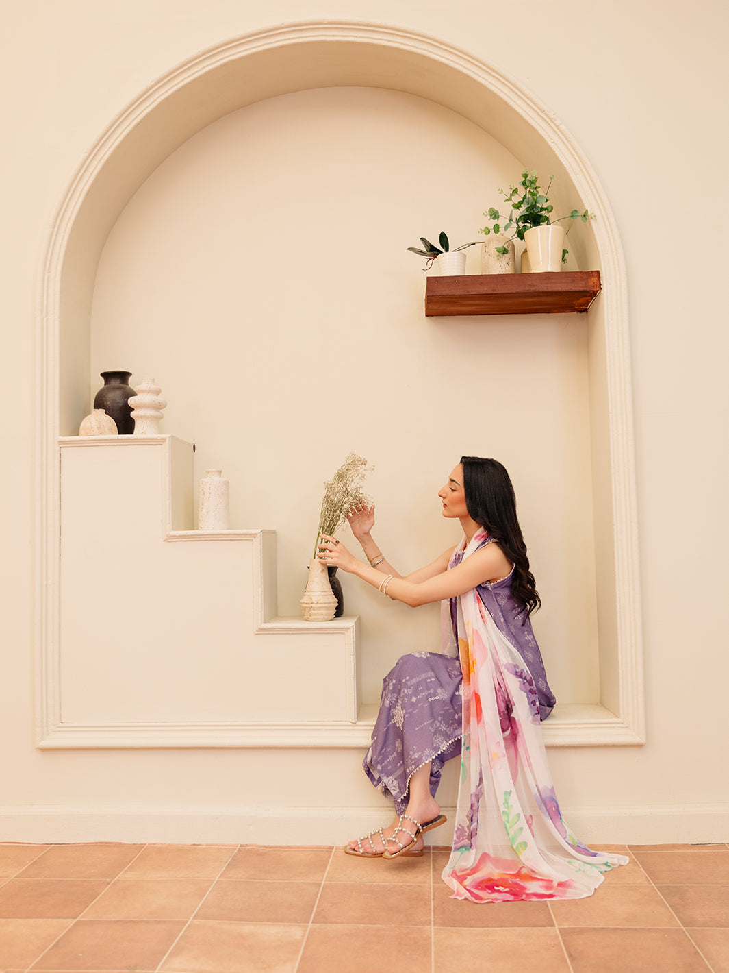 The chiffon dupatta, kissed with pastel hues and delicate prints, adds a playful yet refined touch, making this outfit perfect for leisurely afternoons, tea-time laughter, or quiet winter evenings. Ira is a reminder that simplicity, when laced with detail, is the truest form of sophistication.