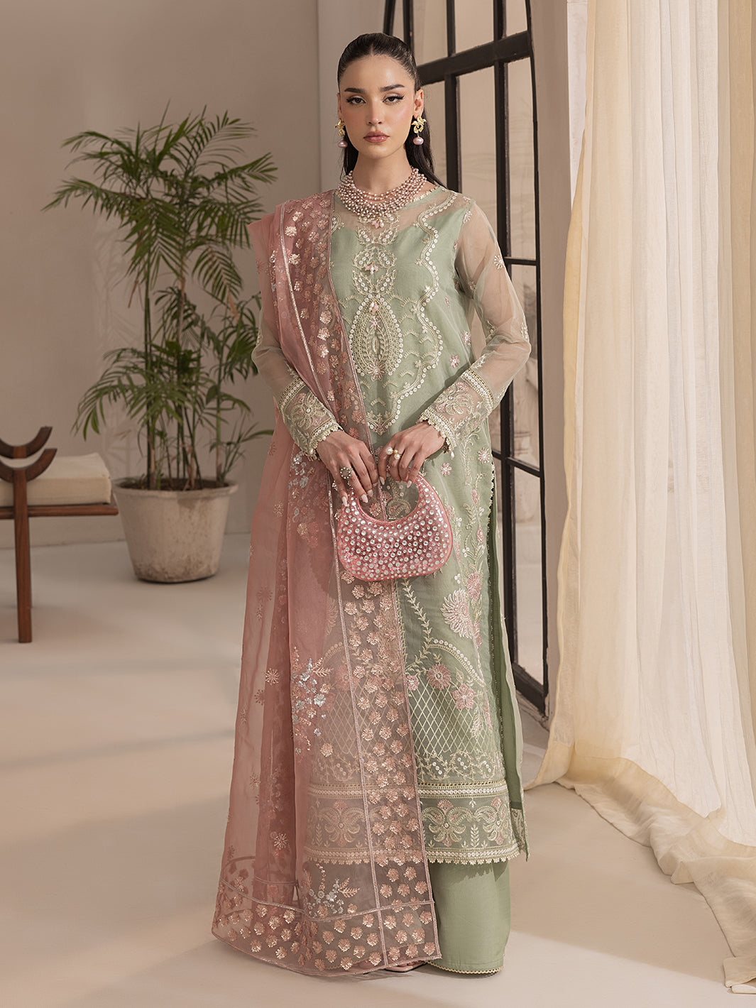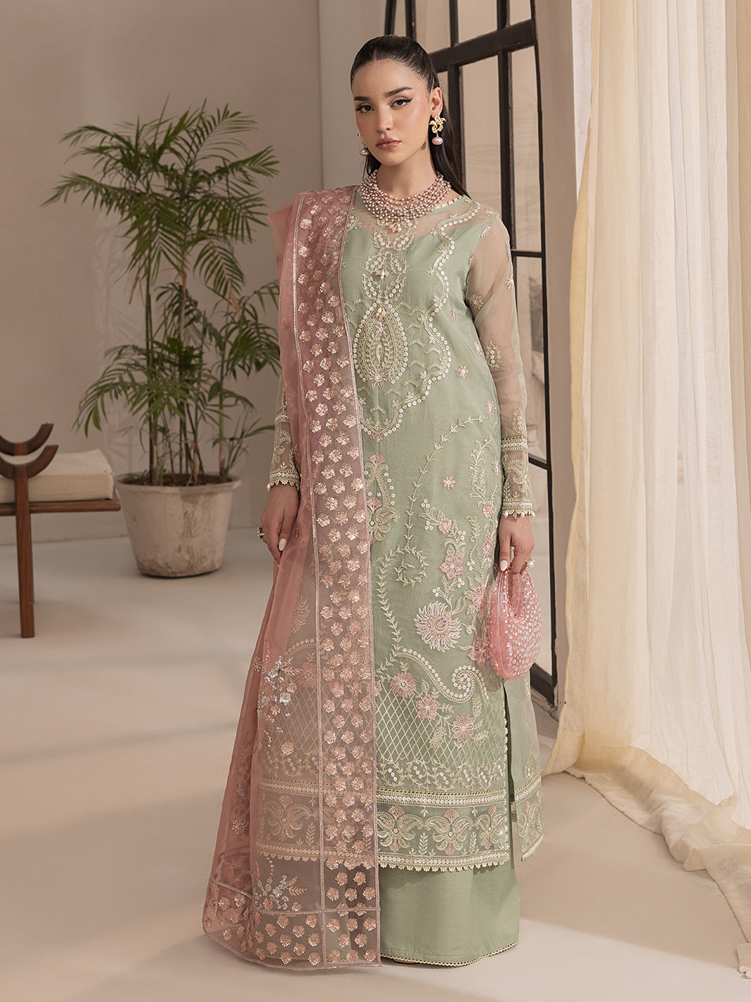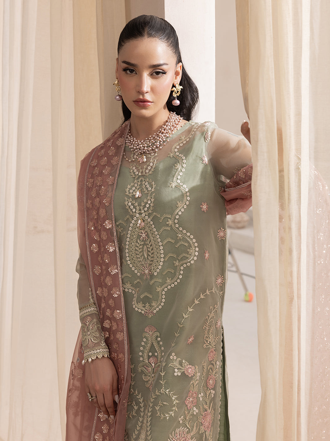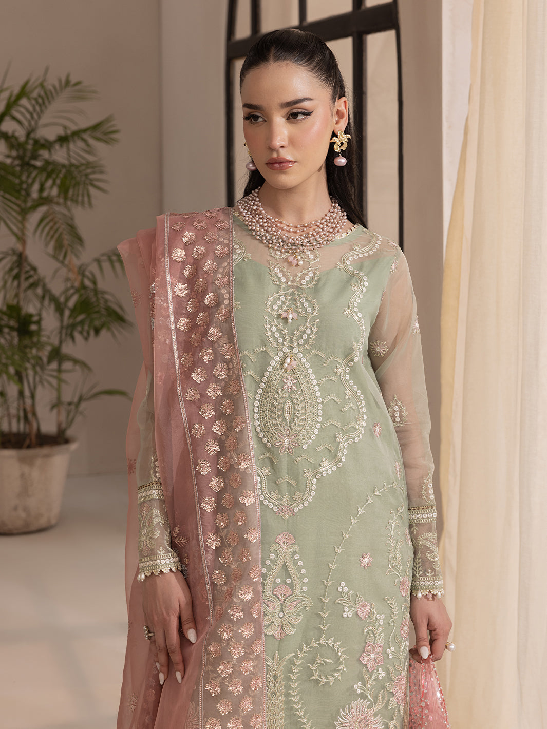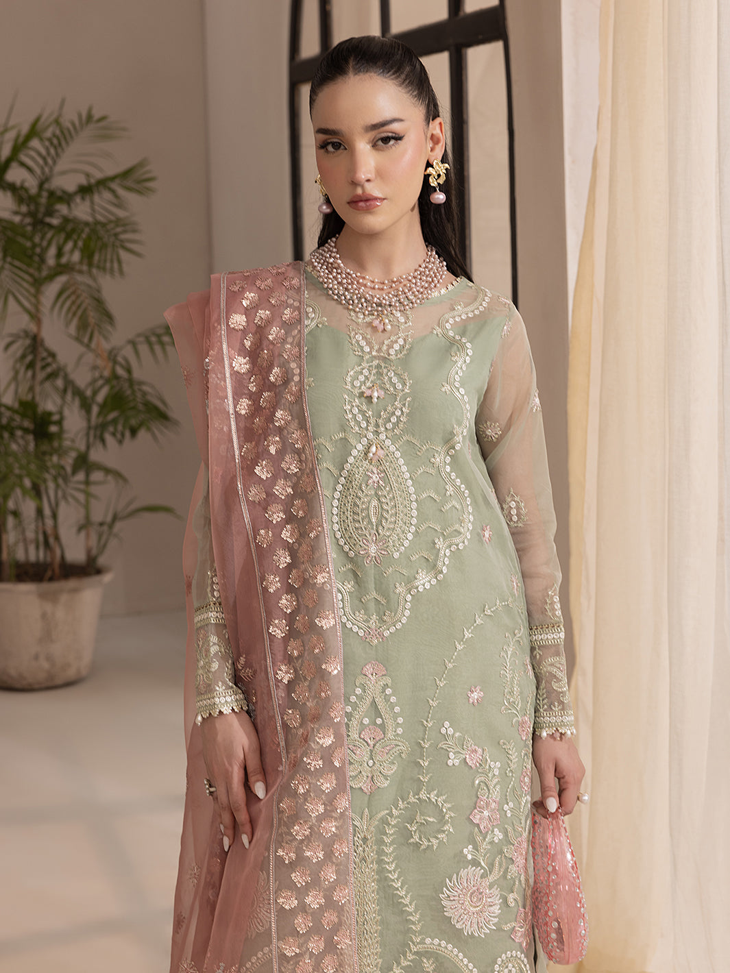 Irene embodies timeless beauty with its intricately embroidered organza front, back, and borders. The embroidered organza sleeves and detailed organza dupatta with a pallu patch complete this luxurious ensemble, ideal for creating unforgettable memories.