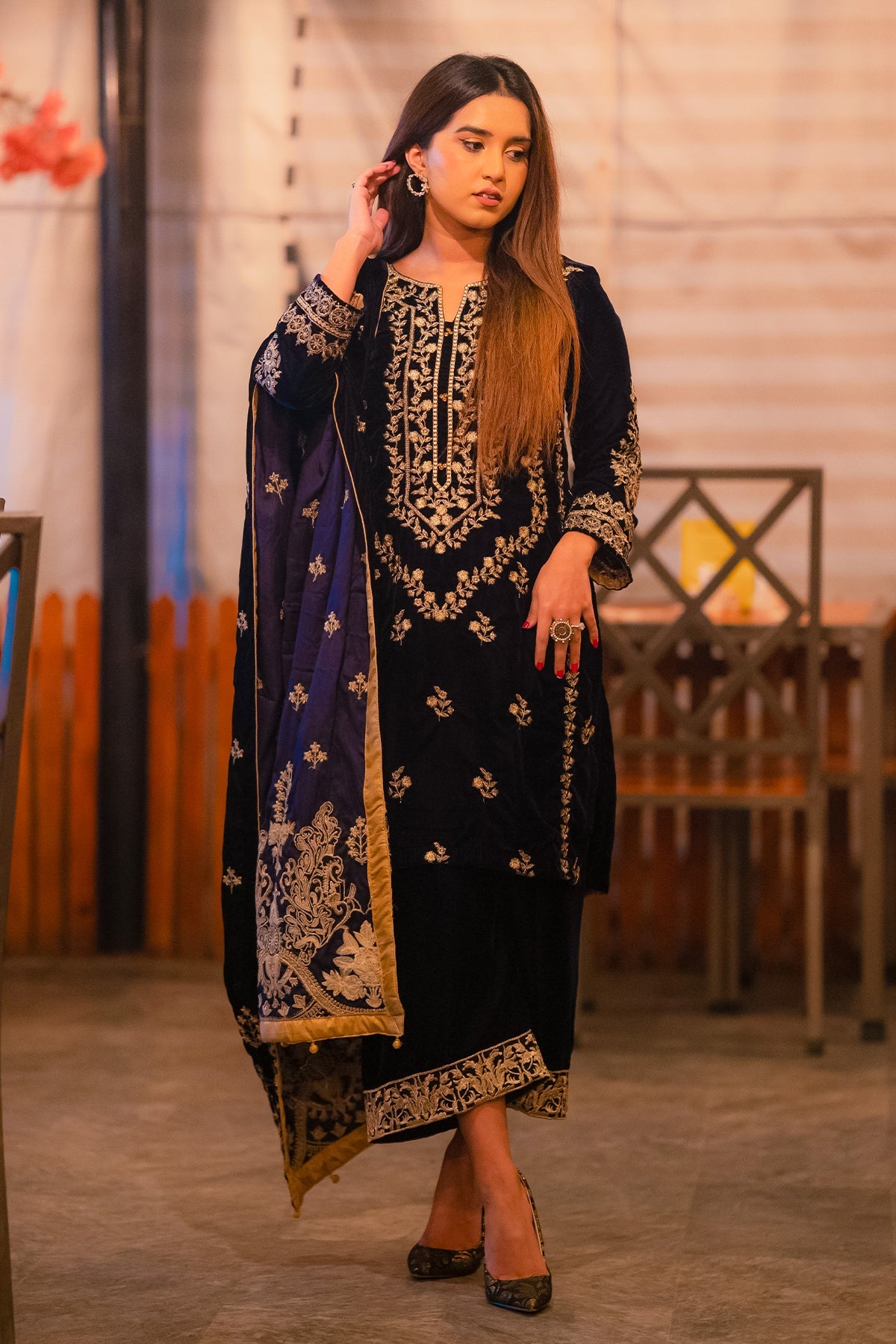 - Work Technique: Fully Tilla Embroidered Shirt and Shawl