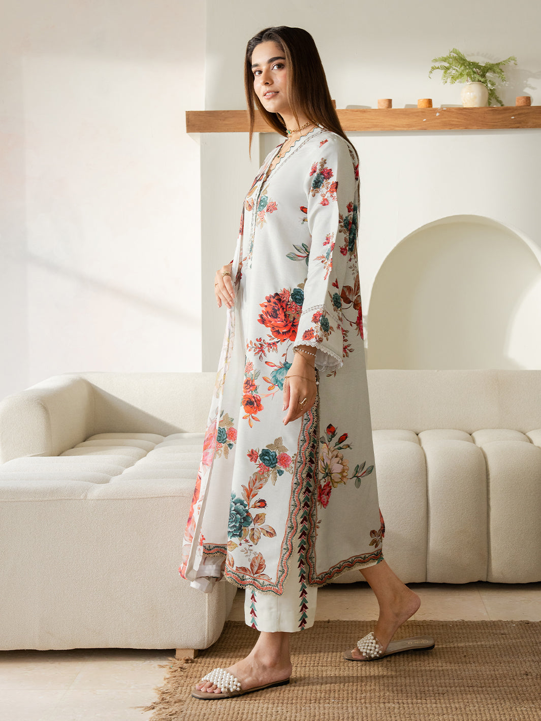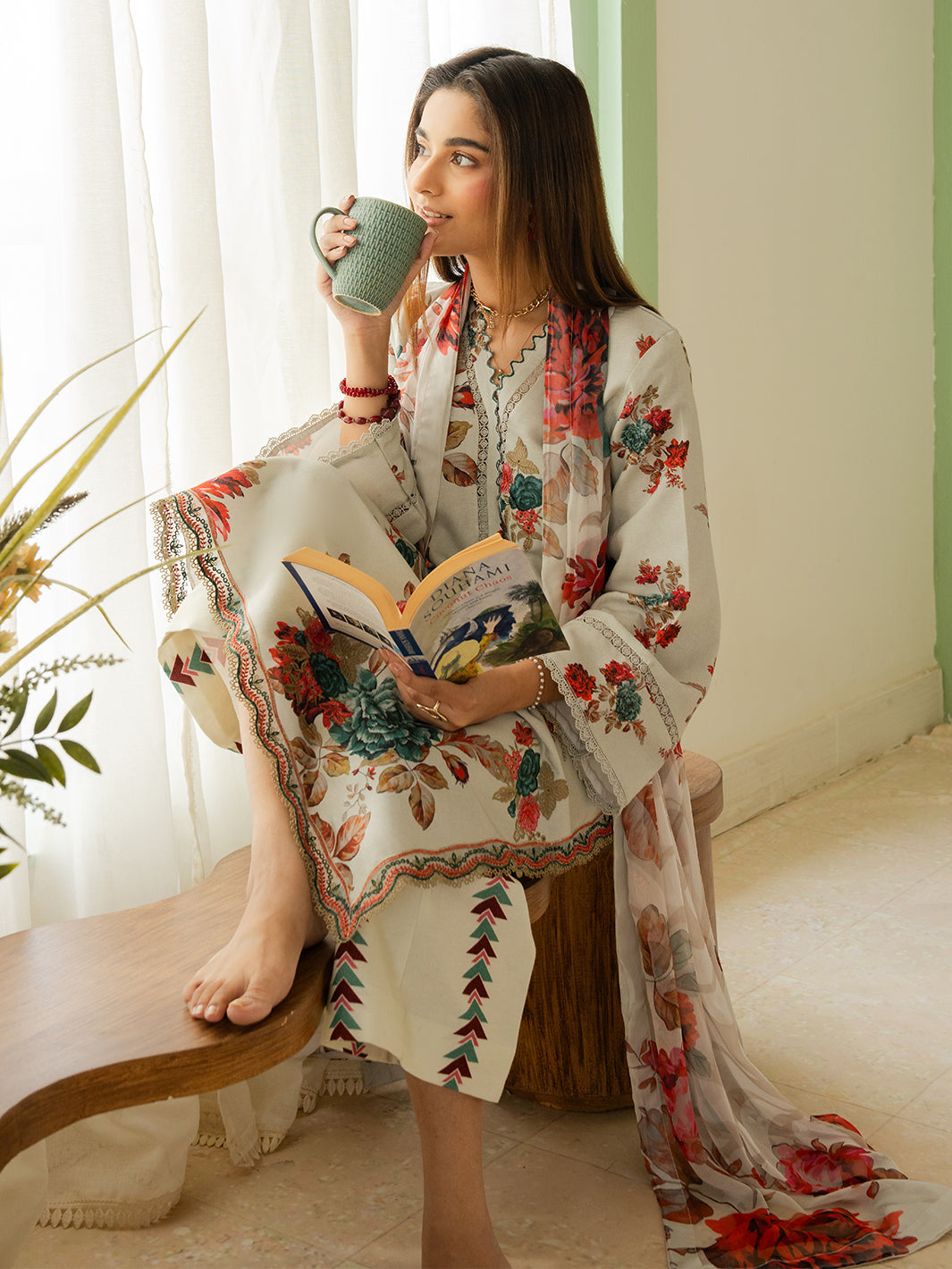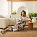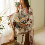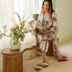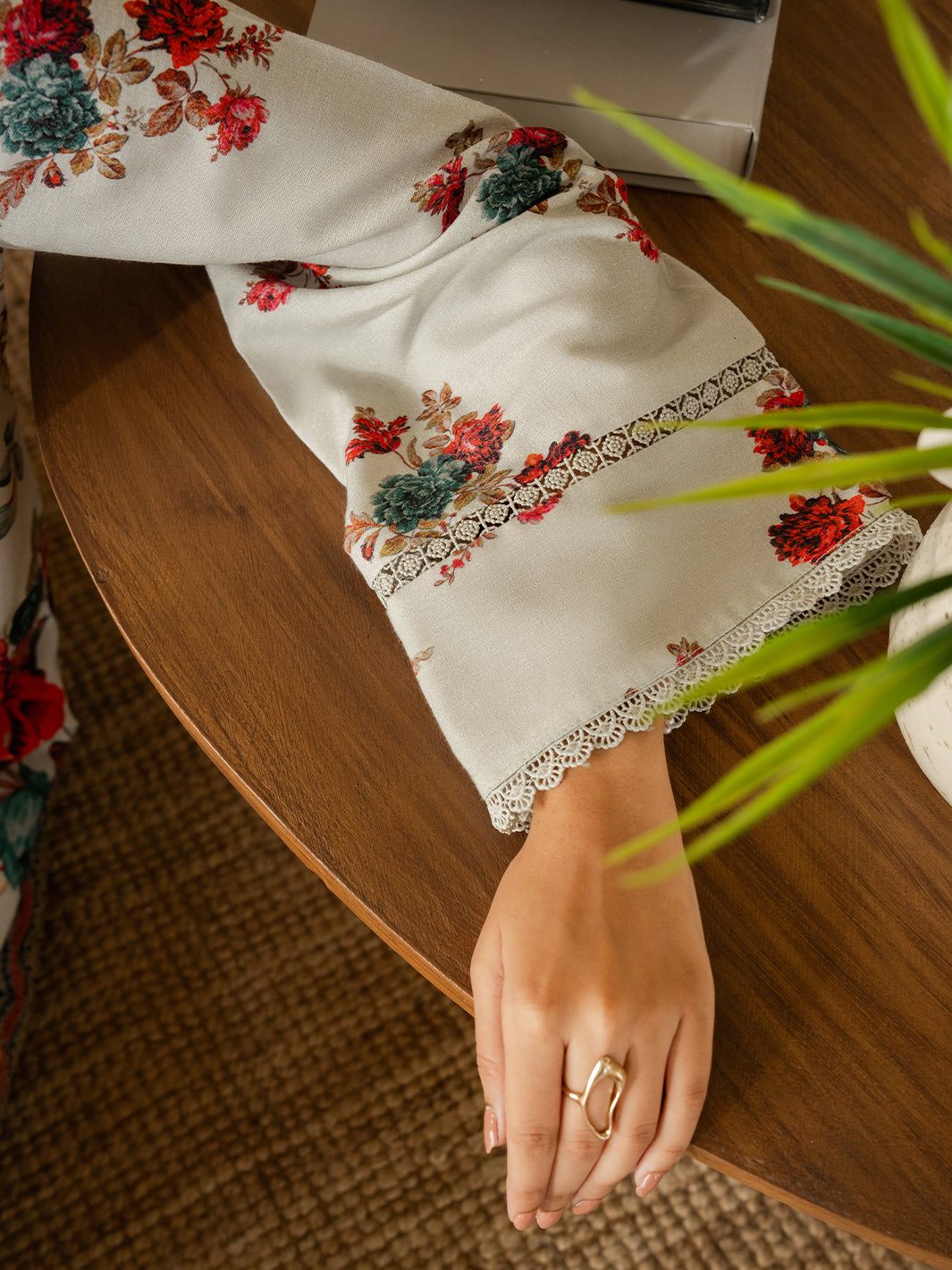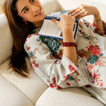 Bold yet graceful, Nysa transforms winter elegance with its striking floral story. Set against a serene Karandi base, the shirt and trousers bloom with vibrant embroidery, reminiscent of a garden alive with color even in the chill of the season.