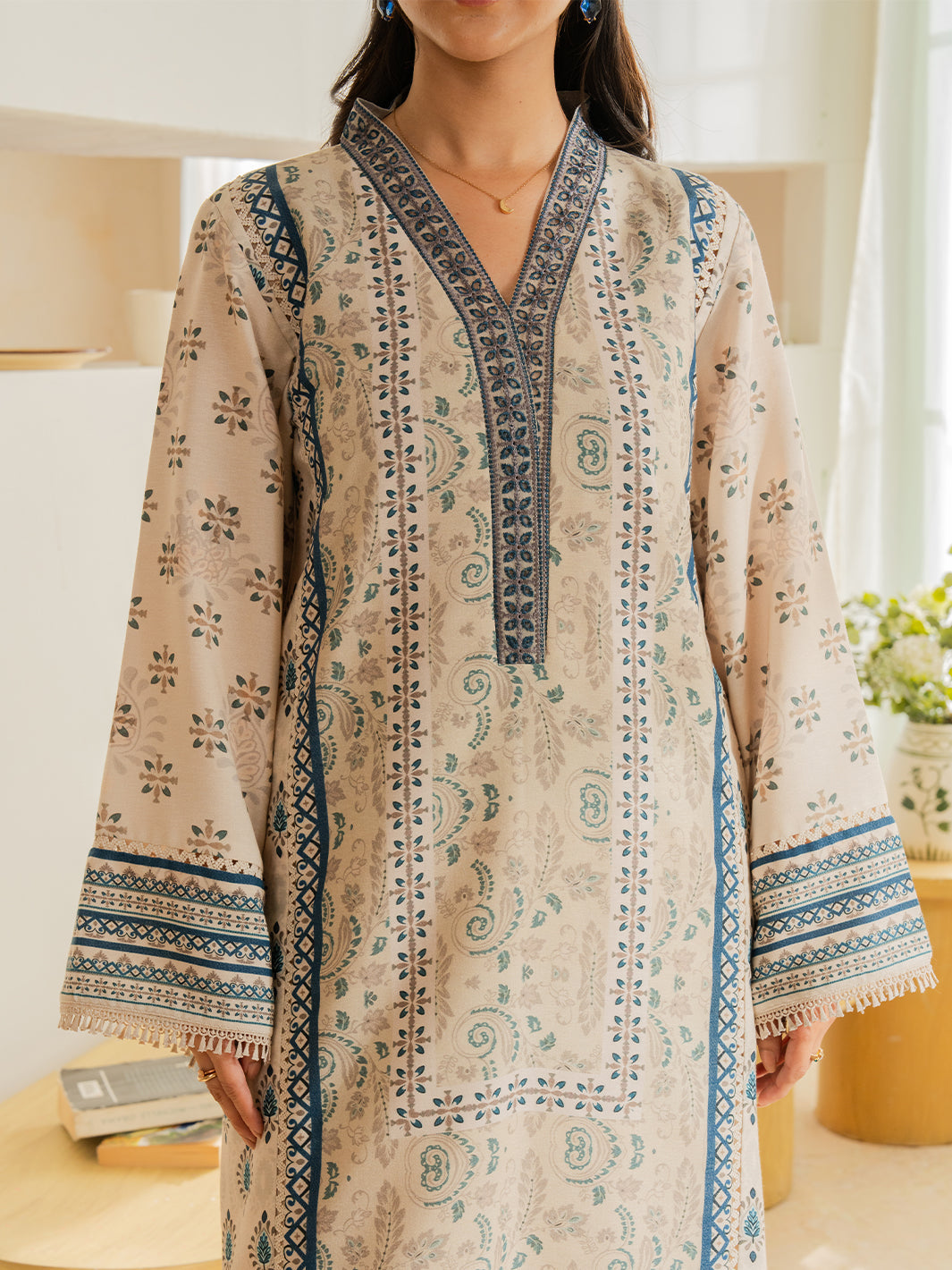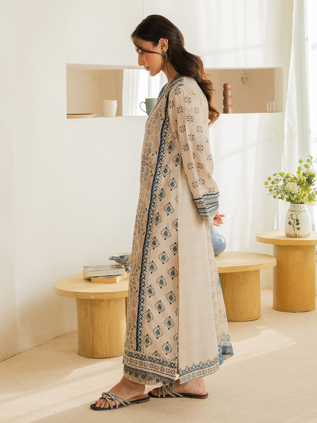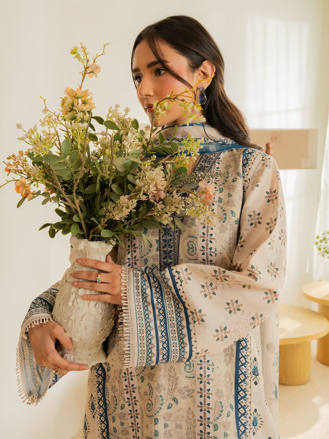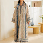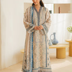 Graceful and understated, Zeya captures the calm of winter mornings in soft tones, elevated with intricate blue embroidery and delicate prints. Crafted in Karandi, the shirt and trousers bring together tradition and modern refinement, making it a versatile choice for any occasion.