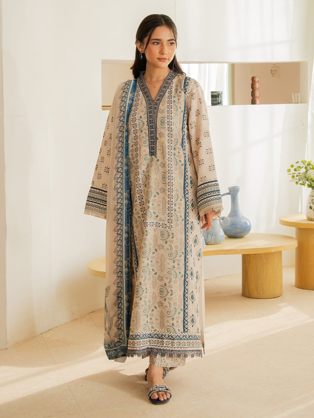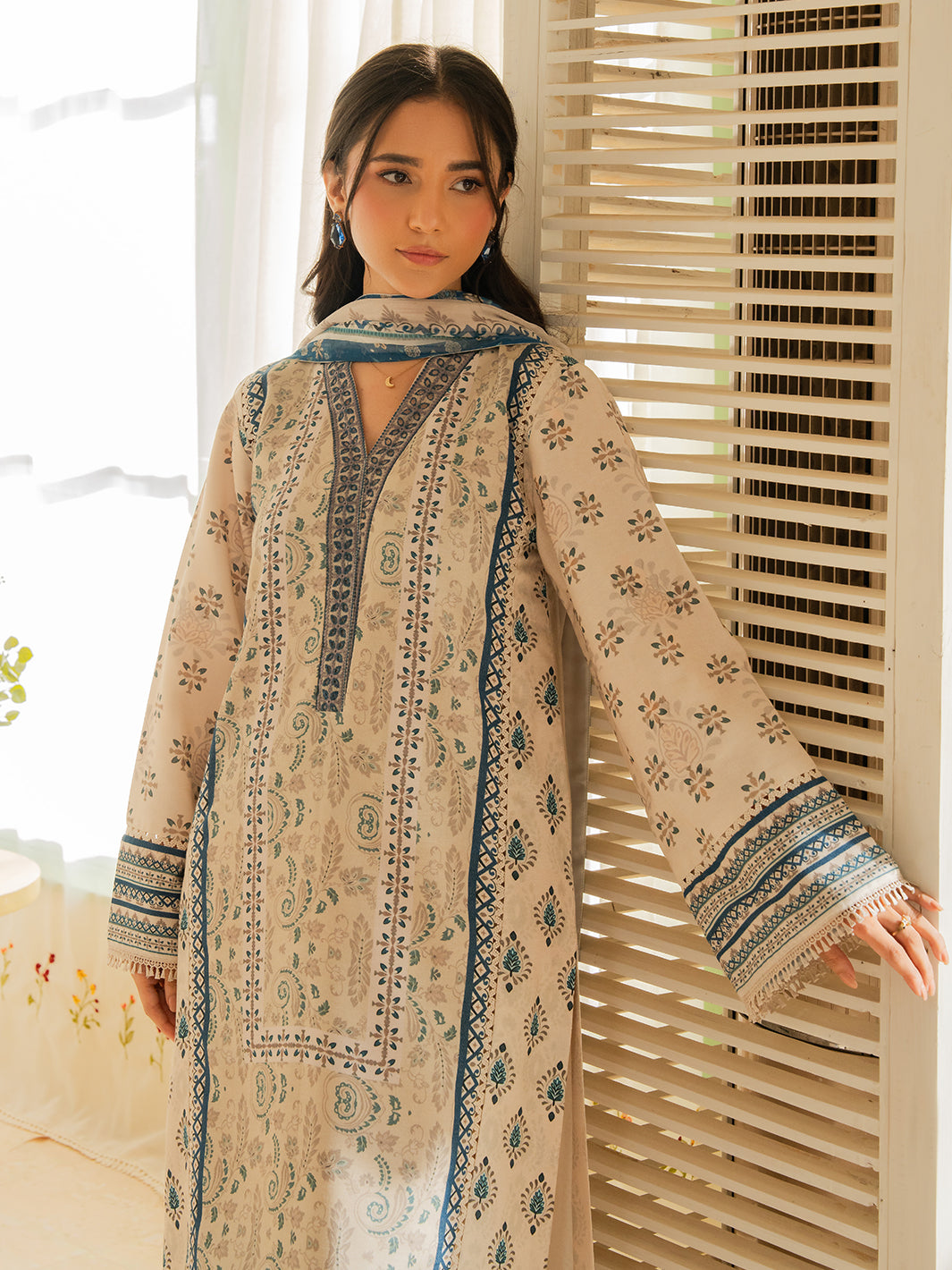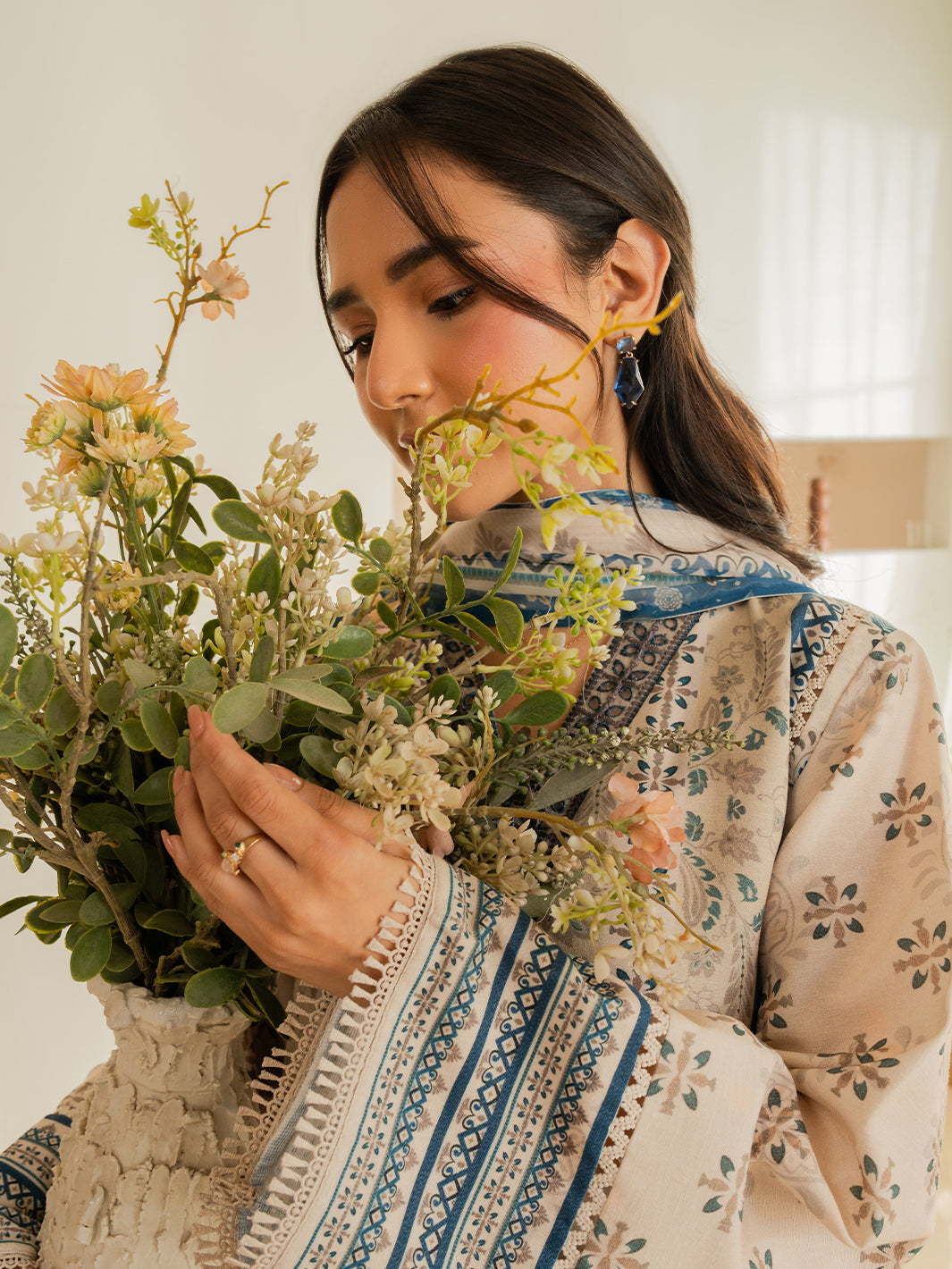 Graceful and understated, Zeya captures the calm of winter mornings in soft tones, elevated with intricate blue embroidery and delicate prints. Crafted in Karandi, the shirt and trousers bring together tradition and modern refinement, making it a versatile choice for any occasion.